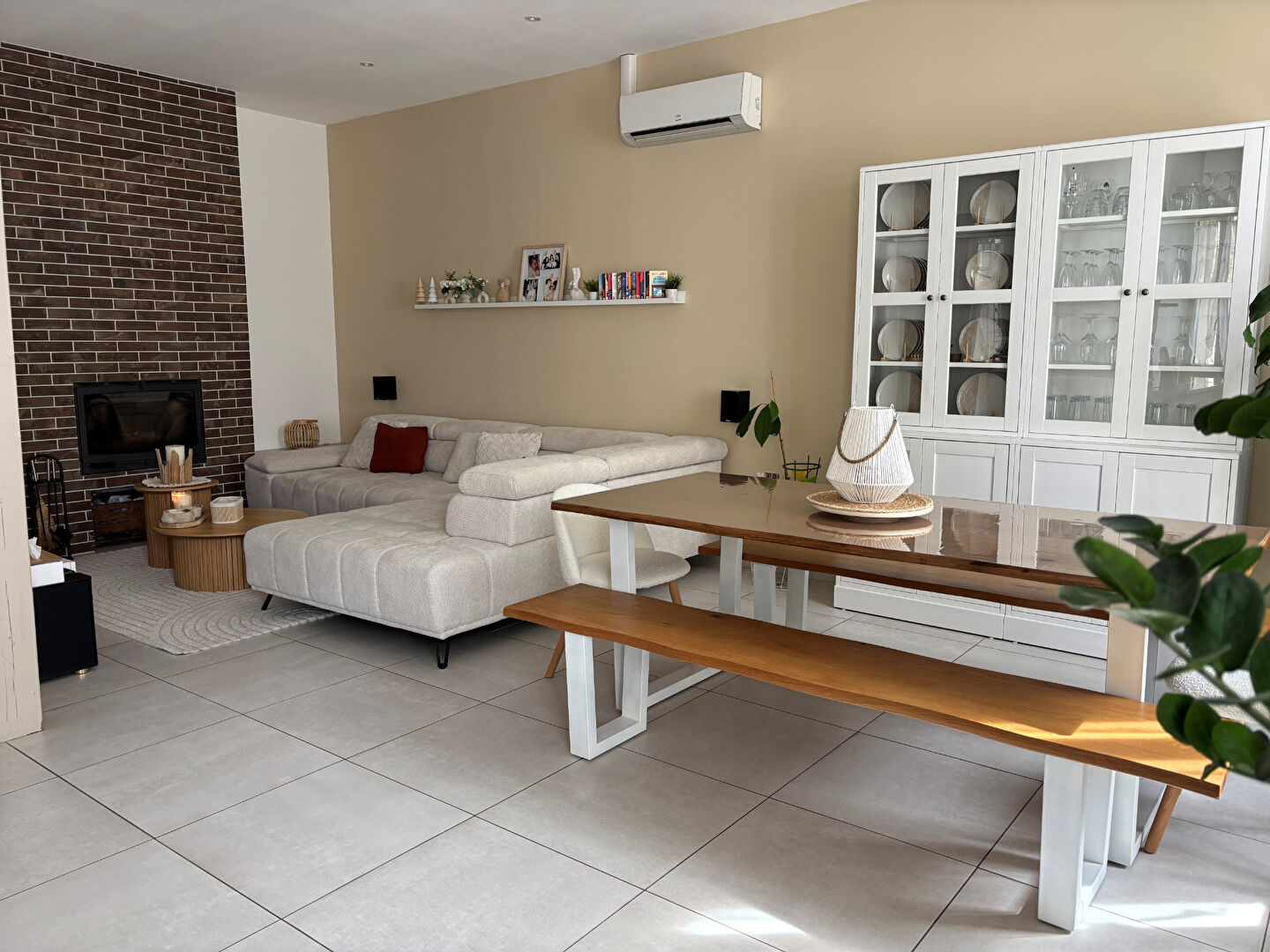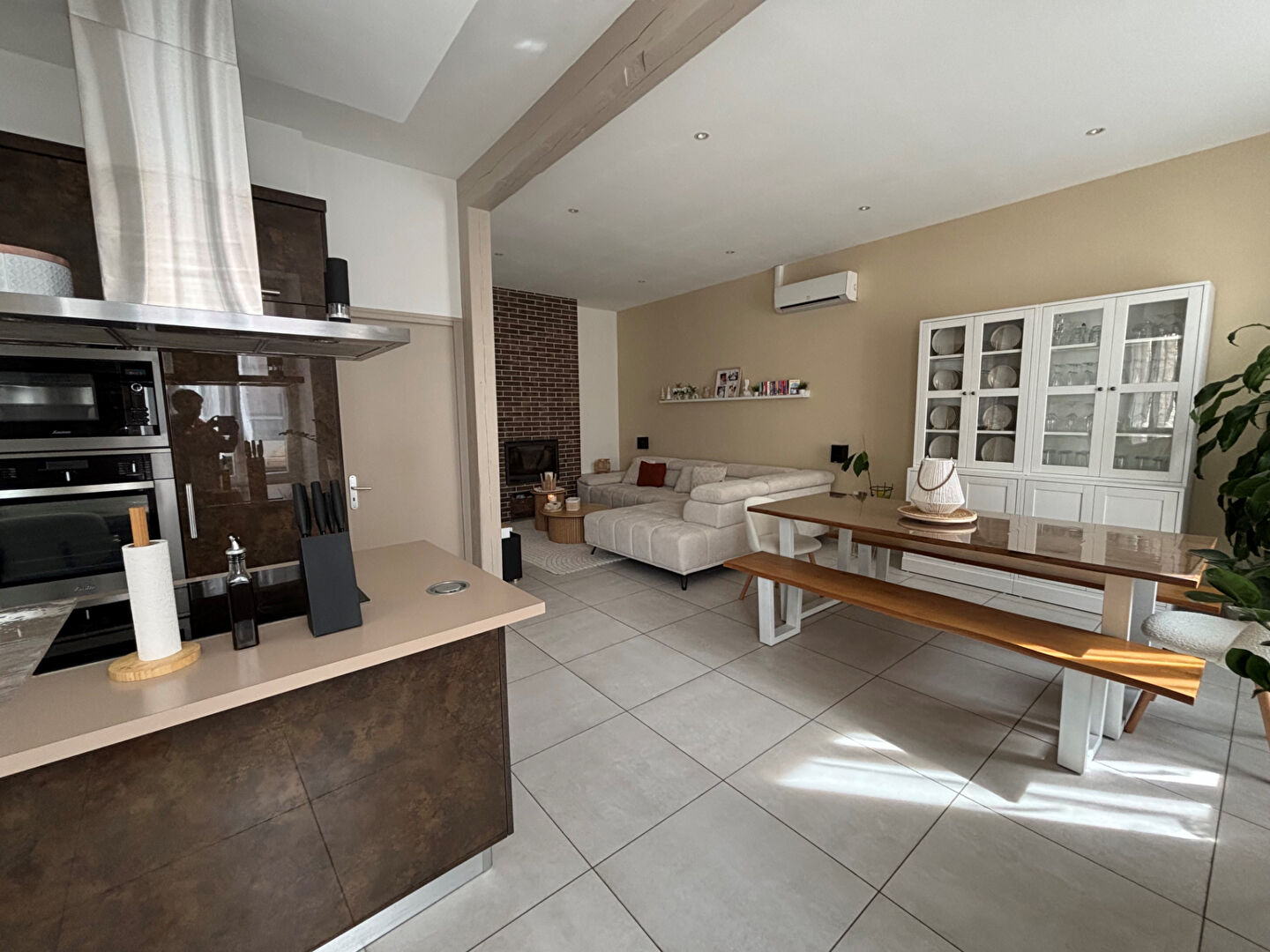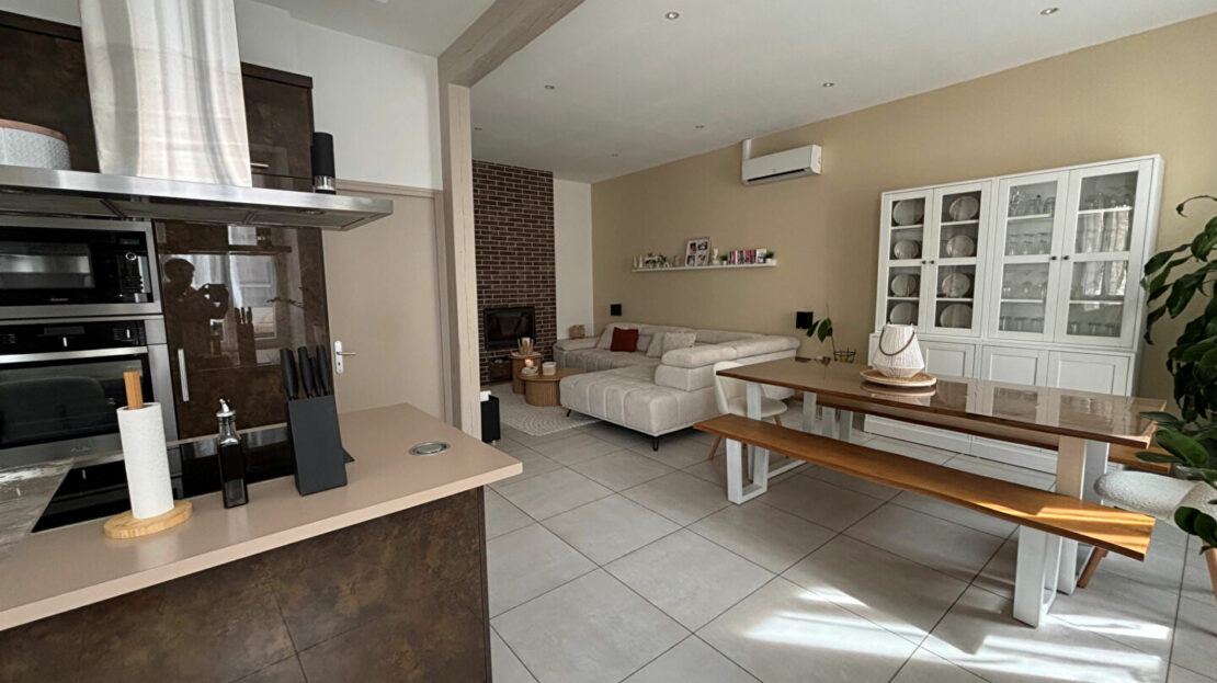 Très belle maison de village de type 5 d’une superficie d’environ 114m² habitables composée d’une cuisine équipée donnant sur double séjour avec cheminée, quatre chambres, salle de bains , deux wc , deux caves et un atelier. Le tout sur 410m² de terrain clos , arboré, cuisine d’été et trois places de parking couvertes.