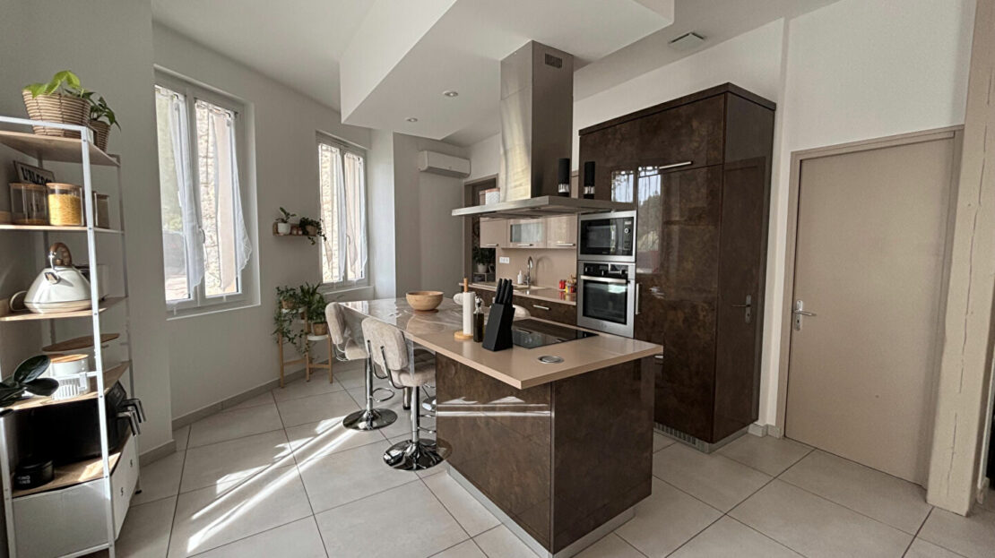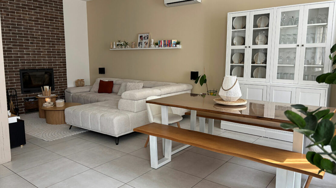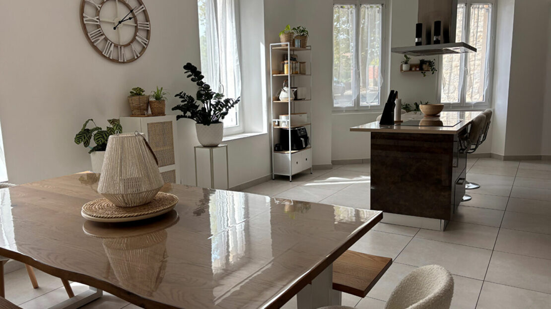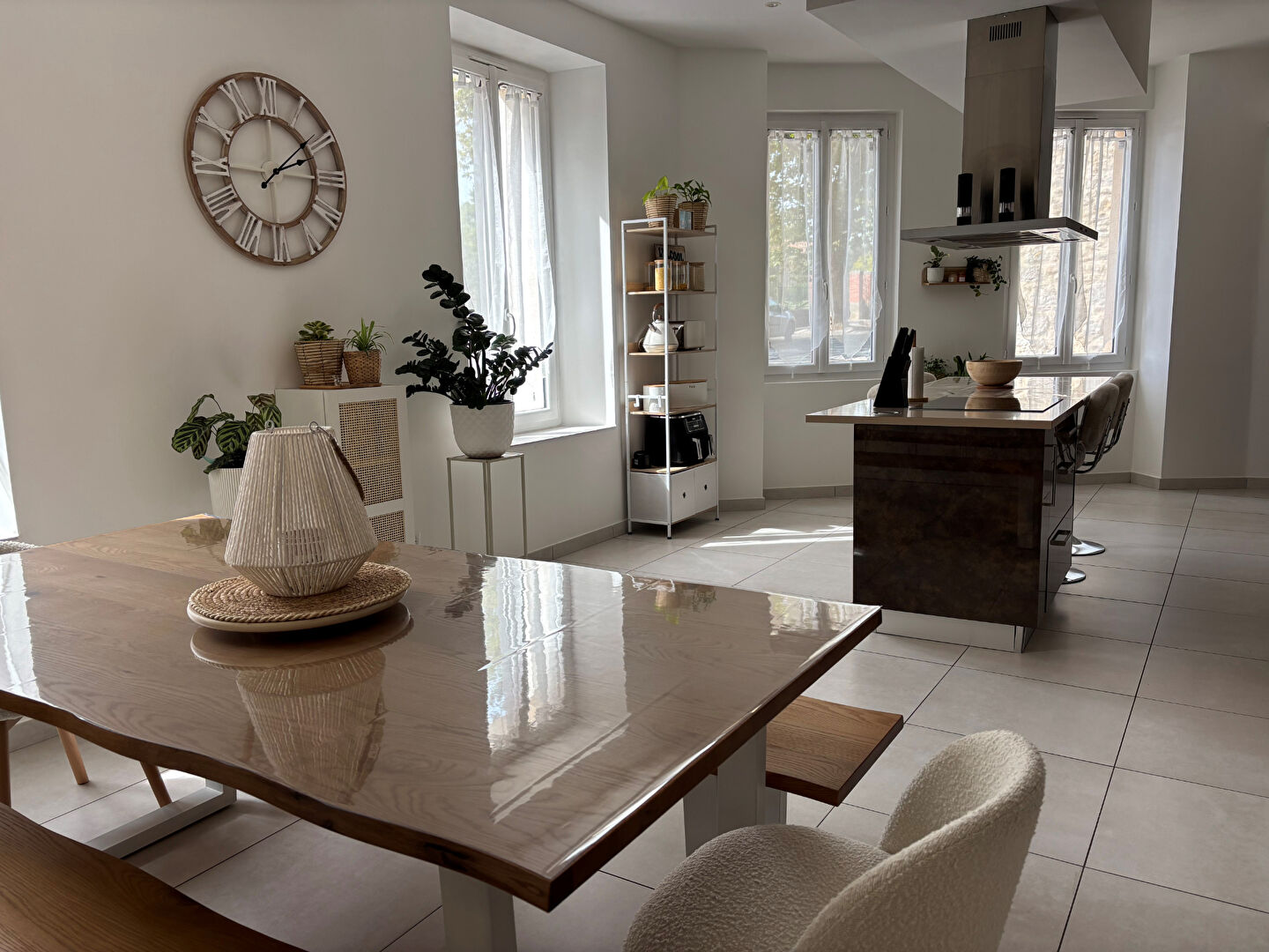 Très belle maison de village de type 5 d’une superficie d’environ 114m² habitables composée d’une cuisine équipée donnant sur double séjour avec cheminée, quatre chambres, salle de bains , deux wc , deux caves et un atelier. Le tout sur 410m² de terrain clos , arboré, cuisine d’été et trois places de parking couvertes.