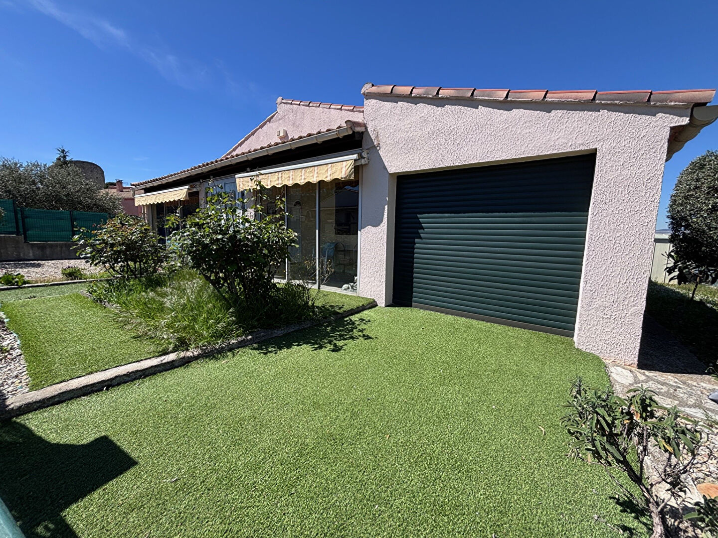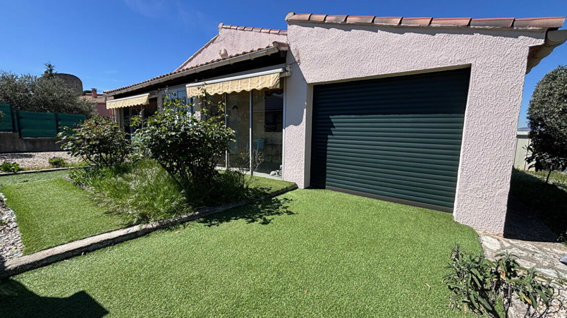 Villa plain pied T3 de 73.70m² habitables + véranda de 16m² sur 419m² de terrain clos et arboré avec garage.