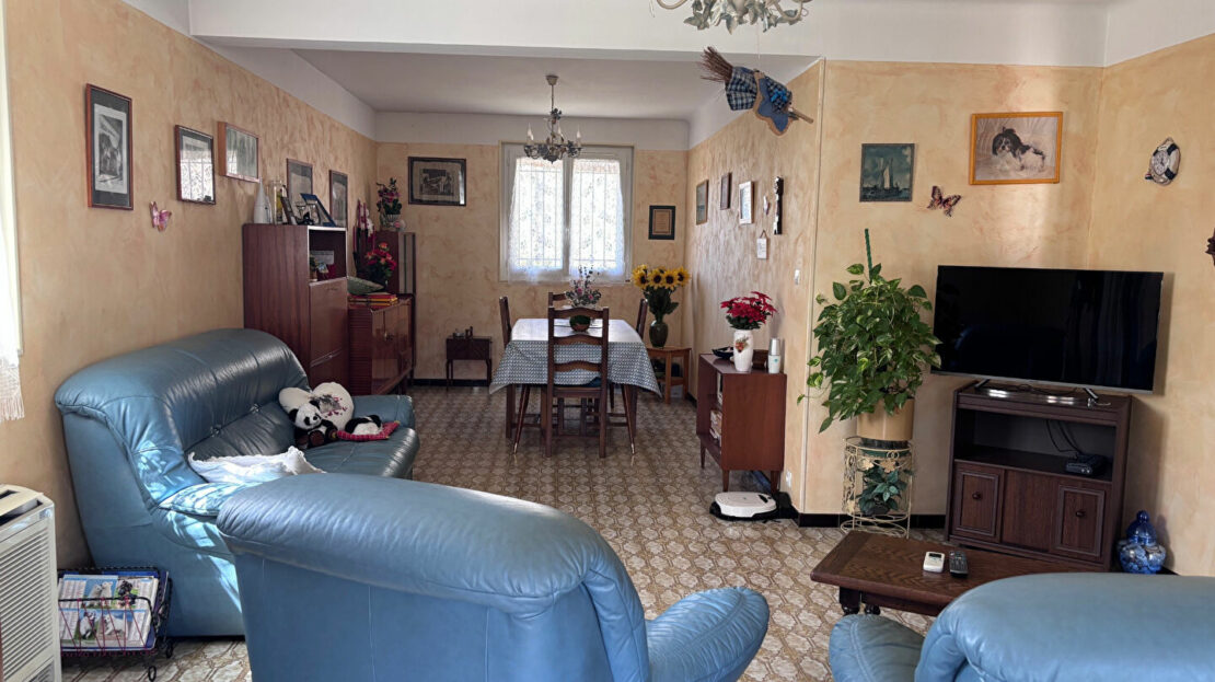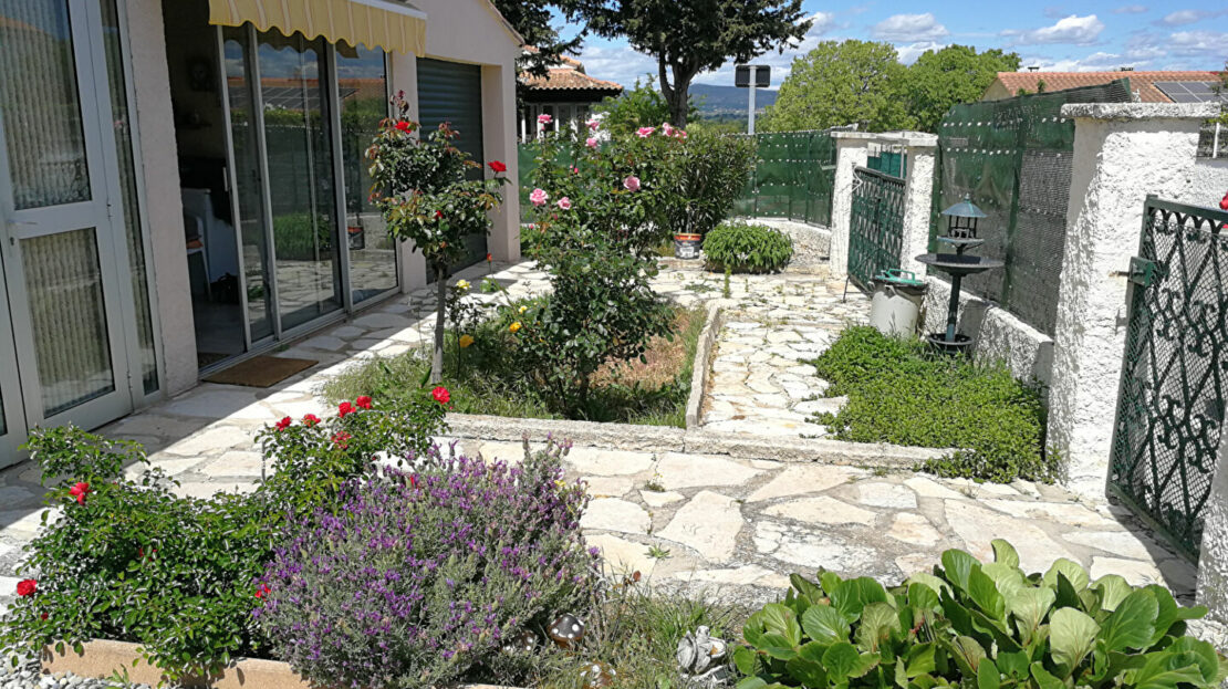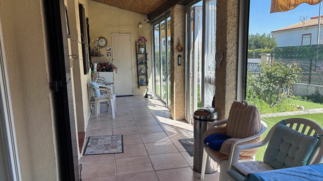 Proche du centre, villa plain pied T3 de 73.70m² habitables + véranda de 16.31m² sur 419m² de terrain clos et arboré .