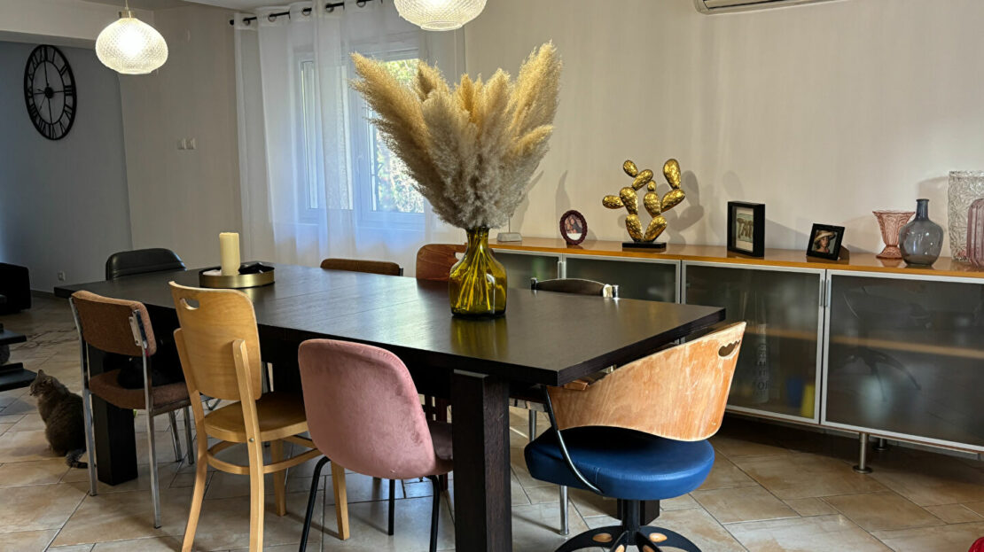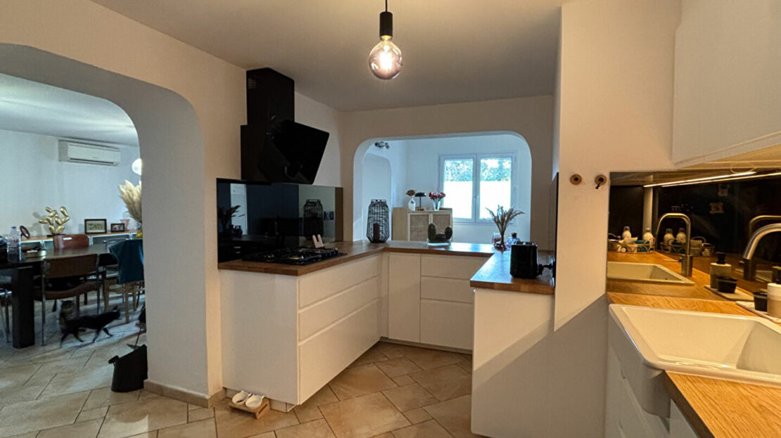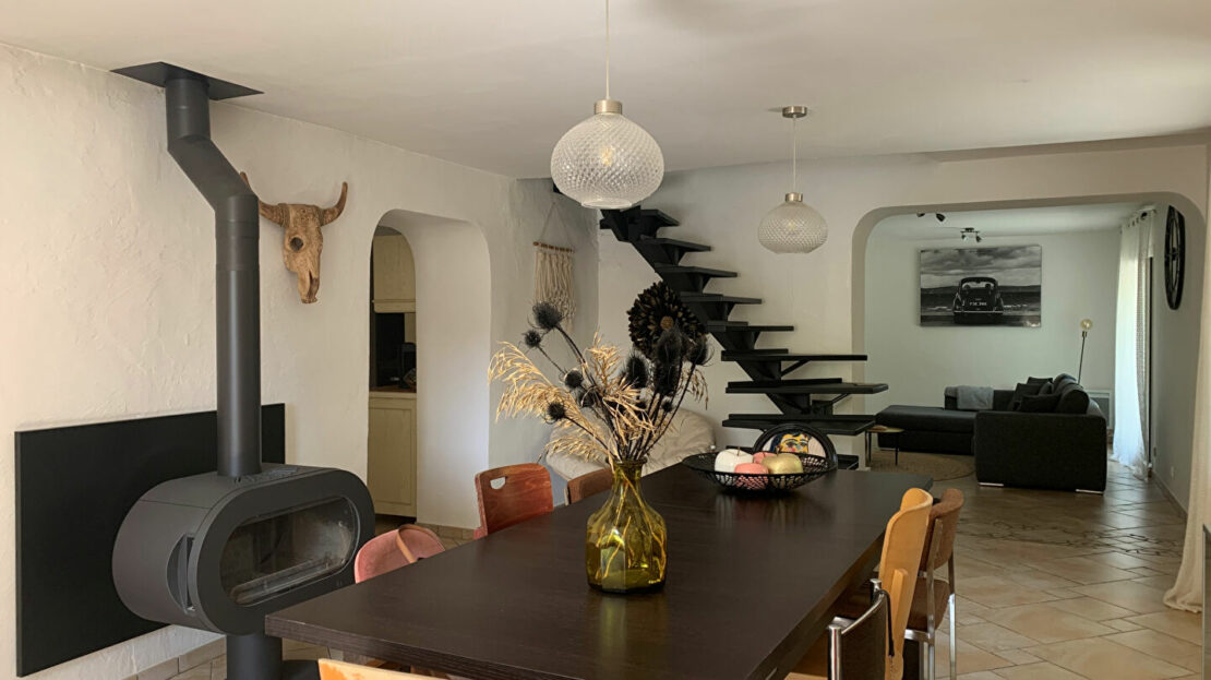 Au calme, très belles prestations, maison T4/5 d’environ 150m² habitables composée d’une cuisine équipée indépendante, salle à manger, salon avec poêle à bois, trois chambres, bureau, dressing, deux salles d’eau, deux wc et cellier. Le tout avec une terrasse d’environ 20m².
